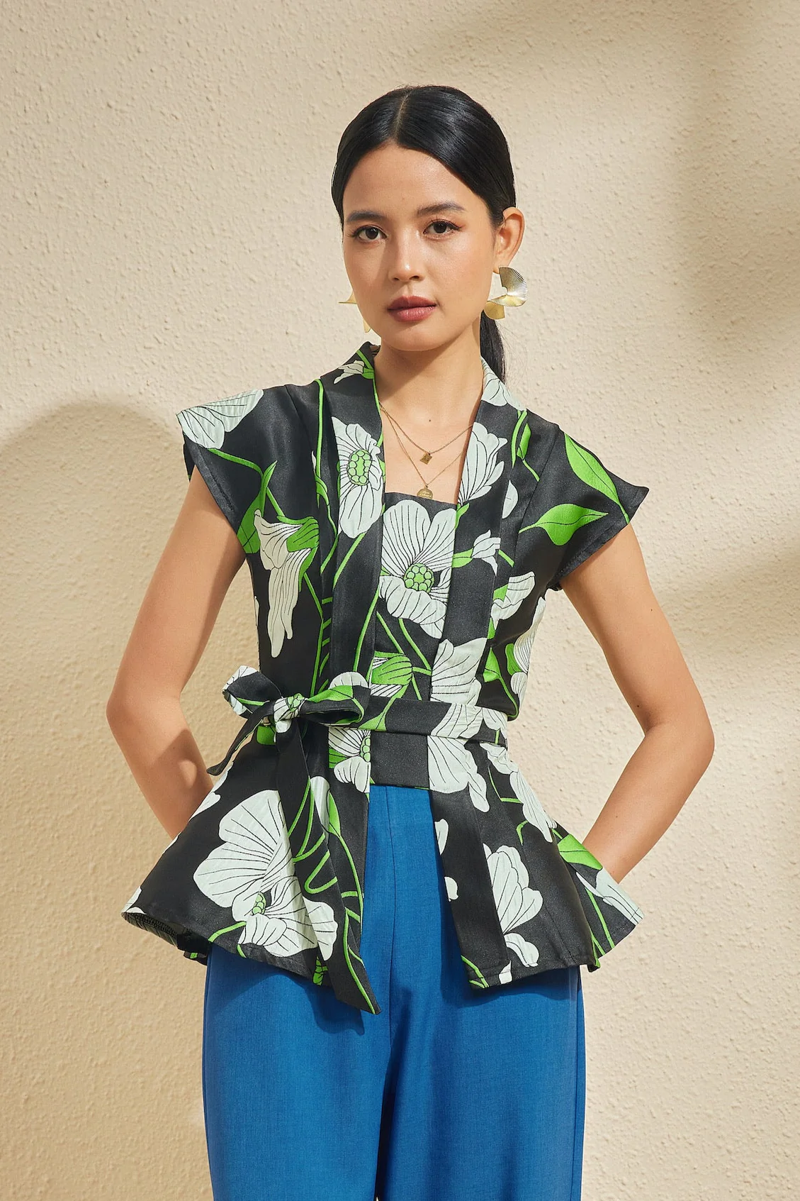 “Nya Chik,” meaning the youngest Nyonya, celebrates youth and new beginnings. The Nya Chik features cap sleeves, hidden placket buttons, and adjustable sashes to accentuate the waist.