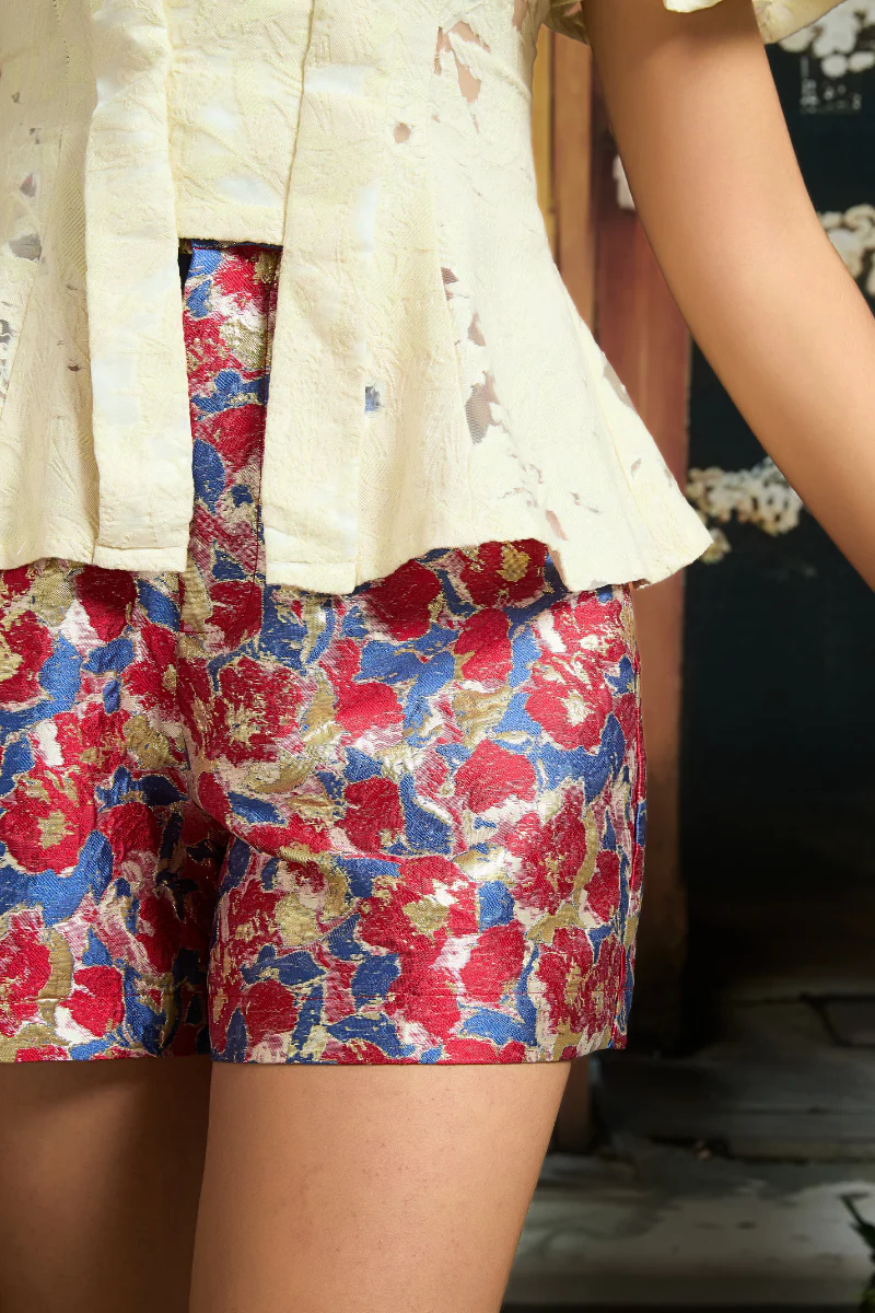 TAILORED SHORTS IN VERMILLION POSY