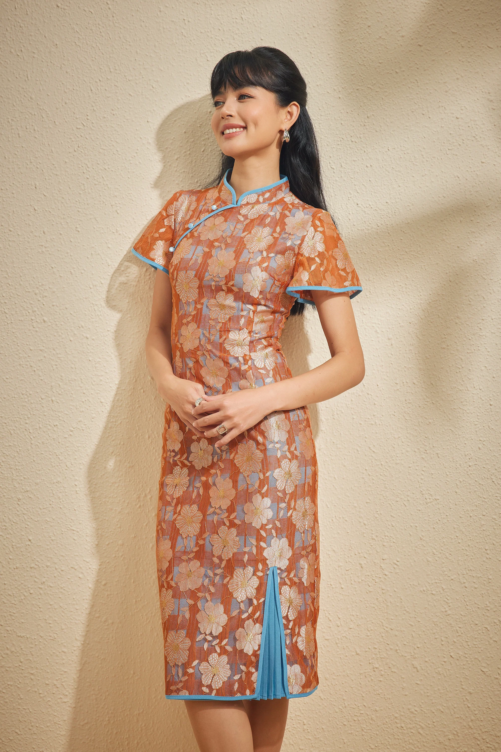 Hsi Shih, named after one of China’s four ancient beauties, is crafted in a beautiful lace design with a pleated front slit. The Vintage Hsi Shih flatters the silhouette with effortless elegance.